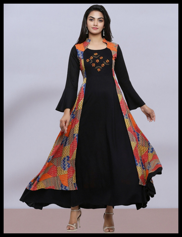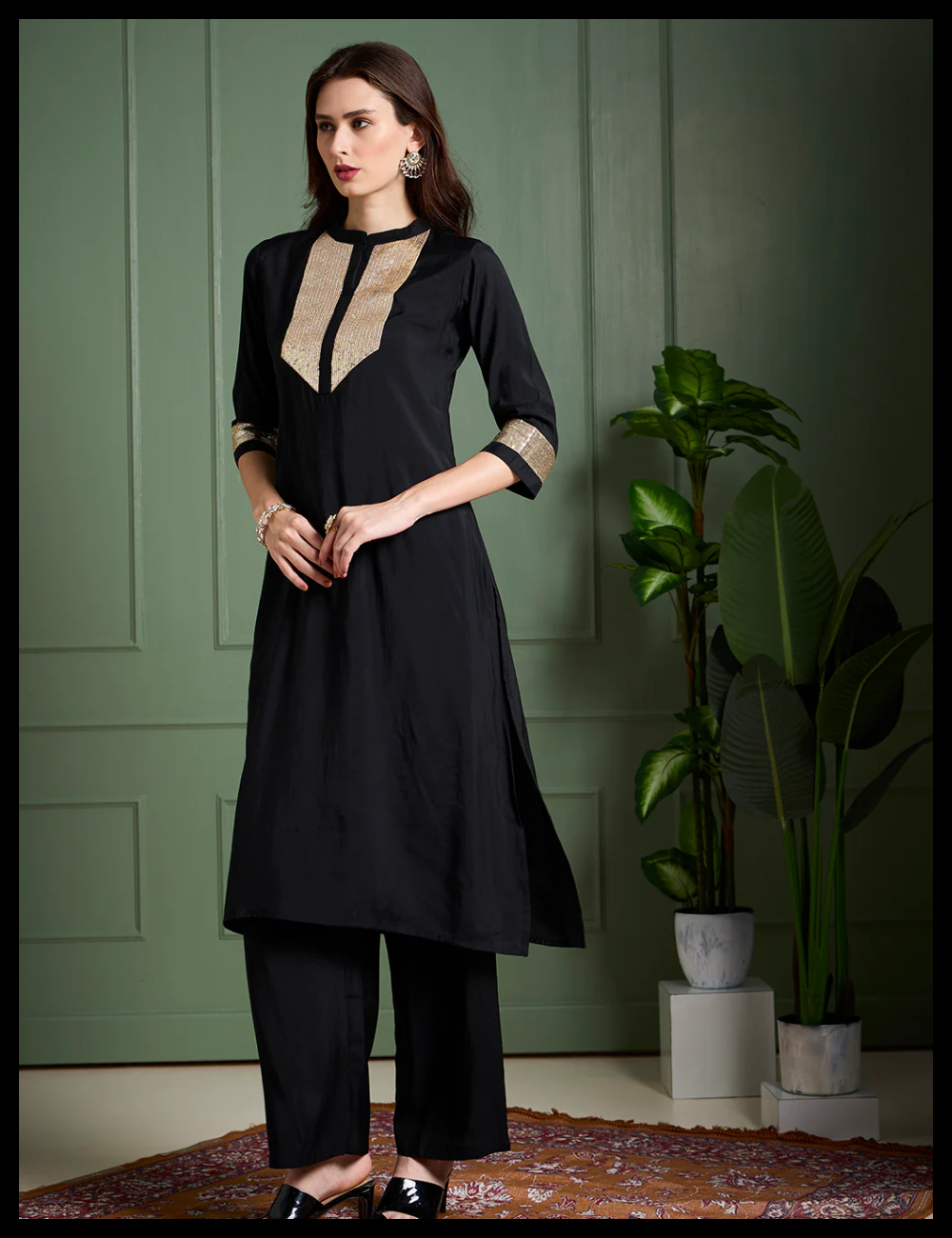 Angrakha Pattern Ethnic Cotton Designer Kurta Set - Black