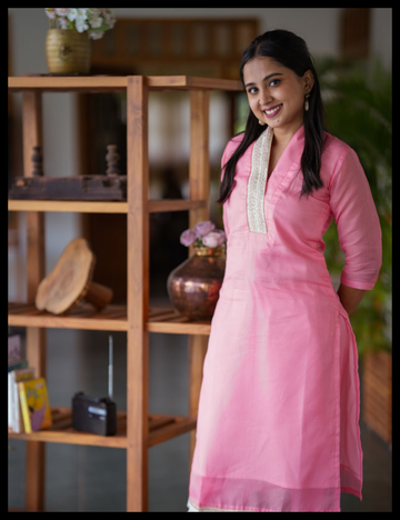 Muslin Silk Festive Kurta Set with Soft Banaras Dupatta - Rani Pink