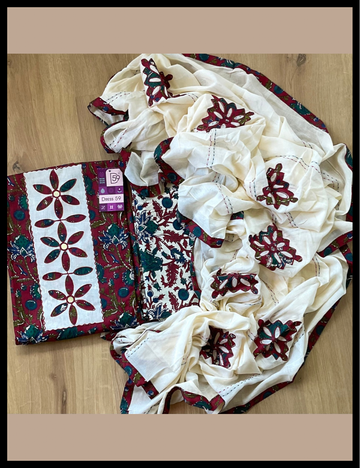 Linen Cotton French Knotted Designer Unstitched Salwar with Sunflower Prints - Beige