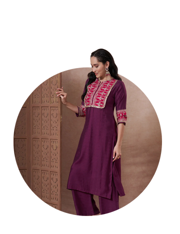 Chanderi Silk Embellsihed Designer Unstitched Salwar - Dark Purple