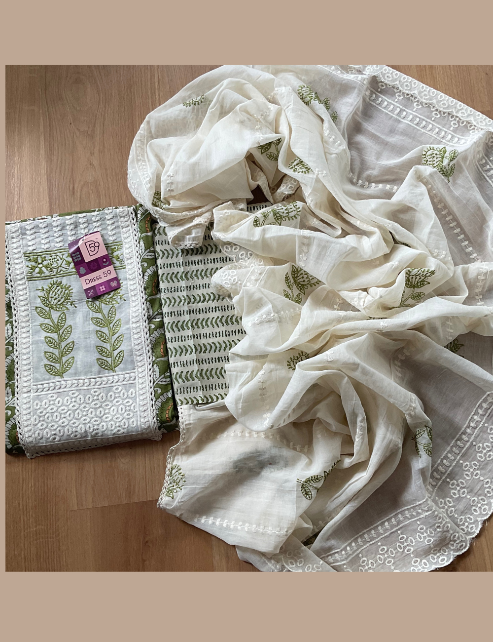 Hand Block Printed Cotton Unstitched Salwar - Green