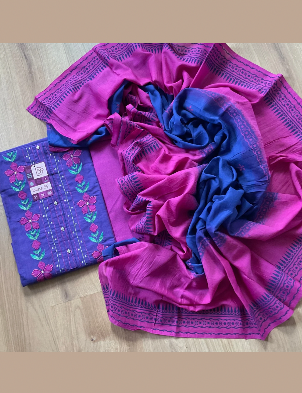 Cotton Floral Embroidered Designer Unstitched Salwar - Purple