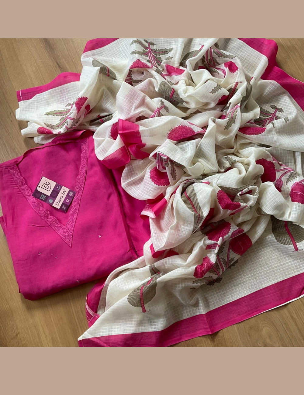 Mul Cotton Designer Unstitched salwar with Floral Printed Kota Dupatta - Dark Pink