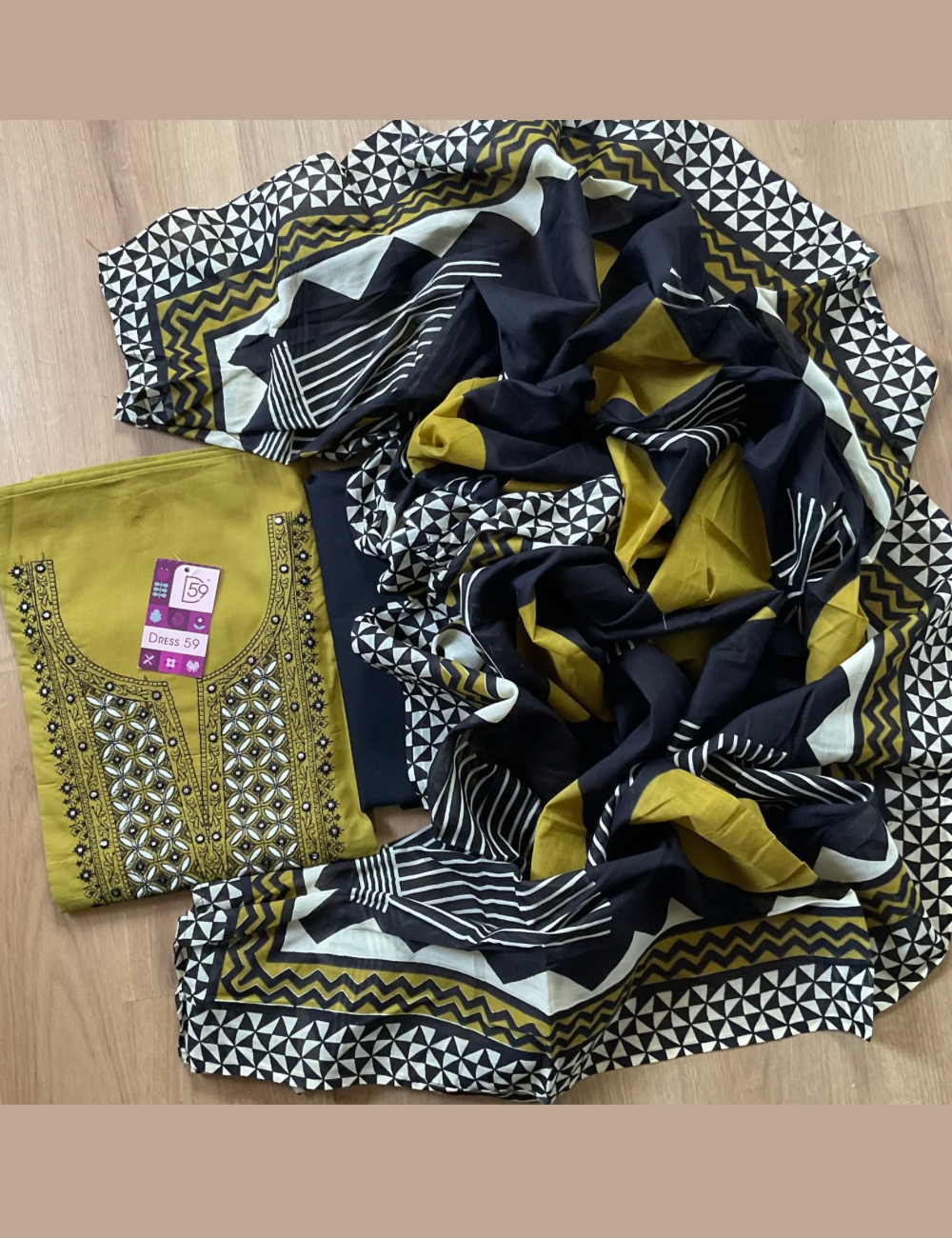 Color: Mustard Type: Unstitched Style/Occasion: Designer Wear, Function Wear, Ethnic Wear Top Fabric: Muslin...