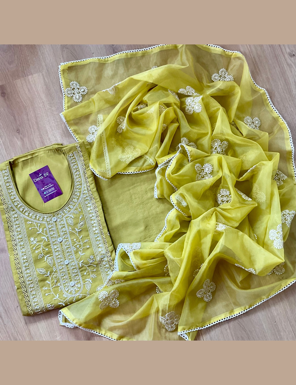 Muslin Silk Designer Unstitched Salwar - Dark lime green