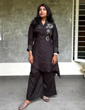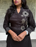 Gajji Silk Designer Coord Set with Floral Embellishments - Black