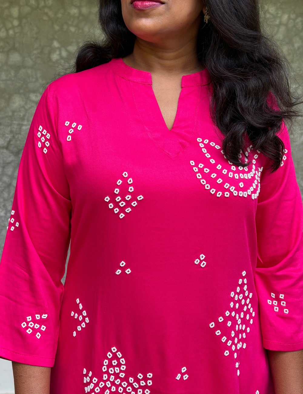 Rayon Cotton Designer Coord Set with Pearl Work - Rani Pink
