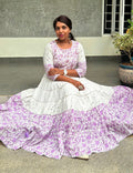 Cotton Layered Designer Midi Style Maxi Dress - White