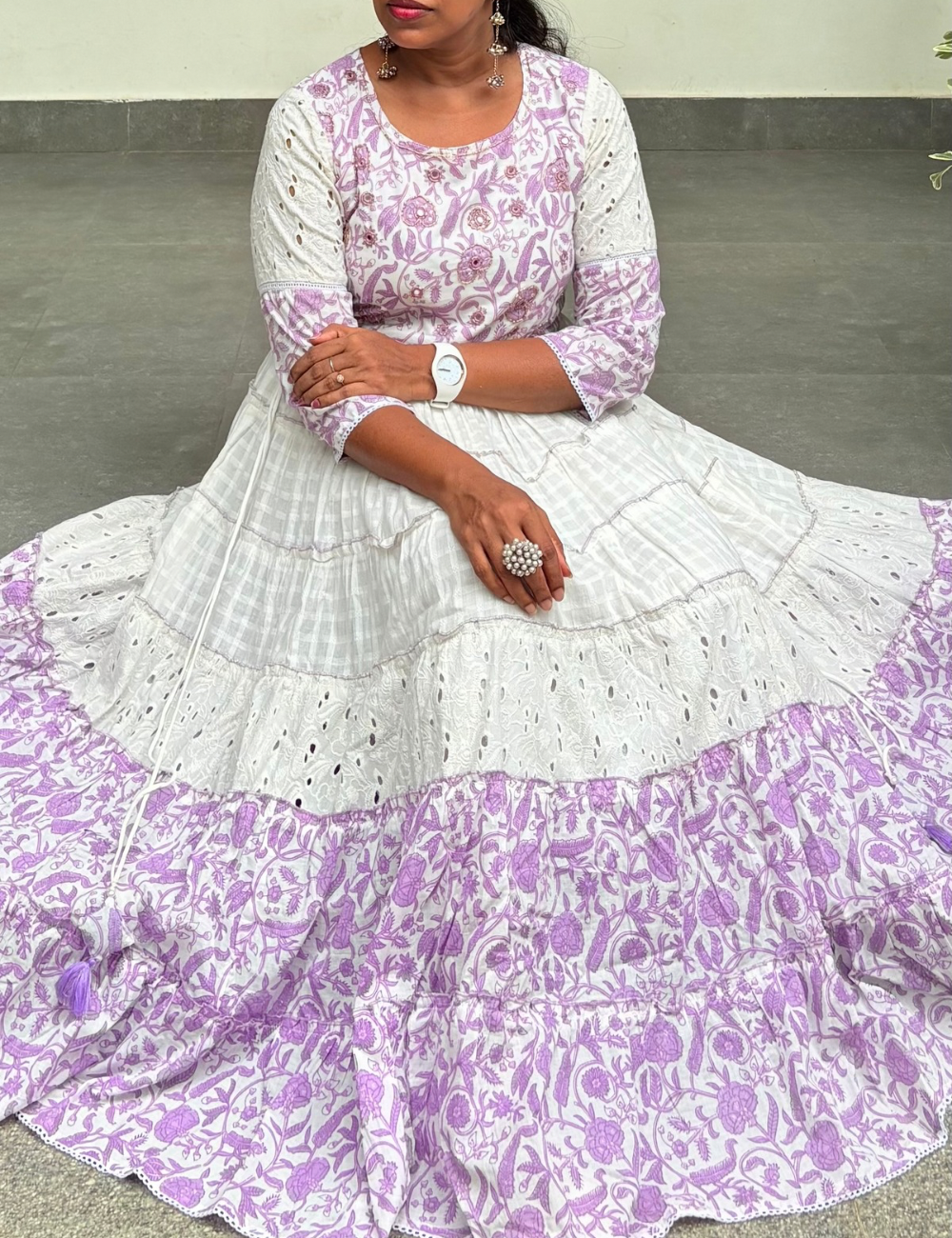 - Fabric: Soft Cotton with beautiful floral prints and delicate embellishments on the yoke