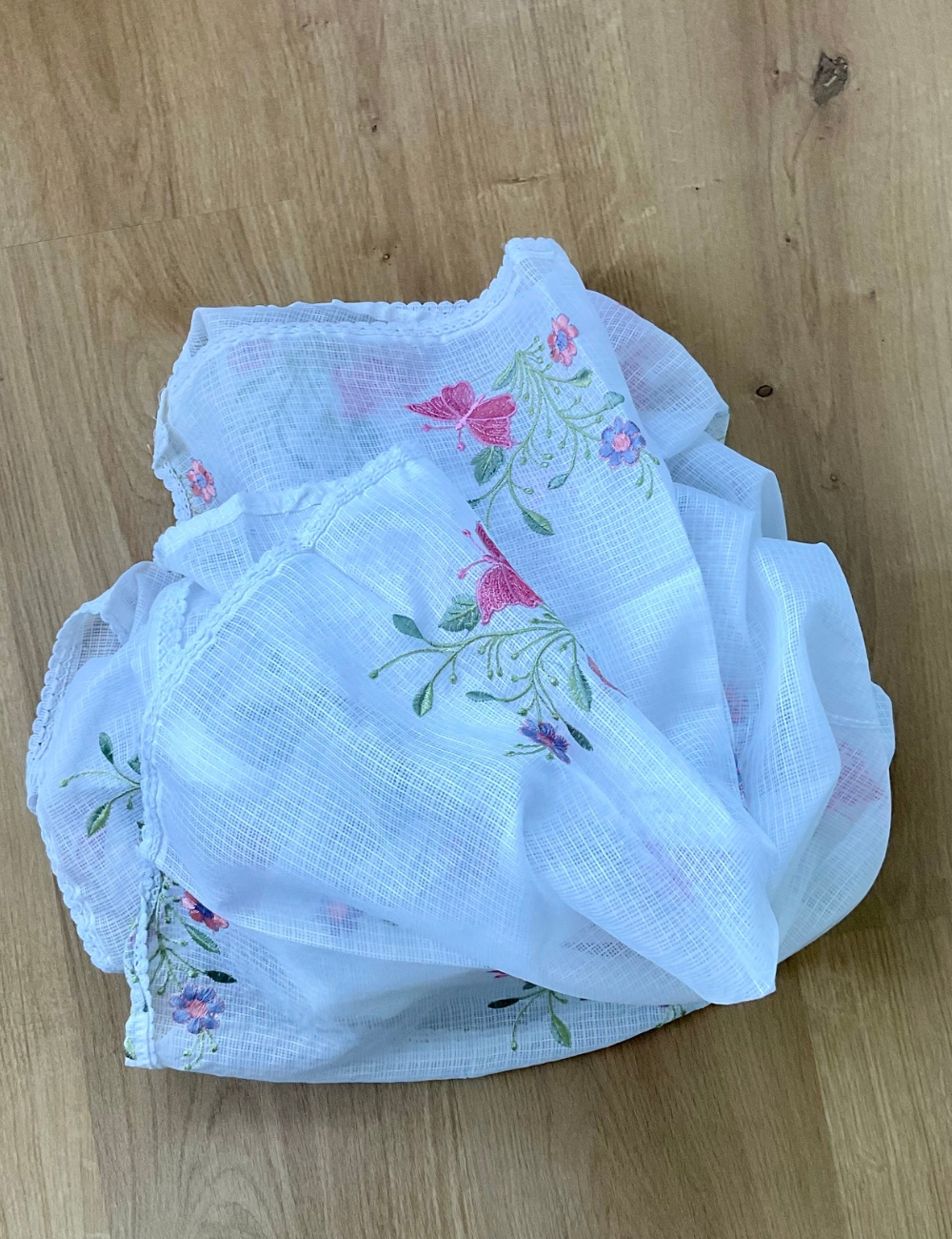 - Top Fabric: Soft kota cotton, with butterfly pearl work on the yoke