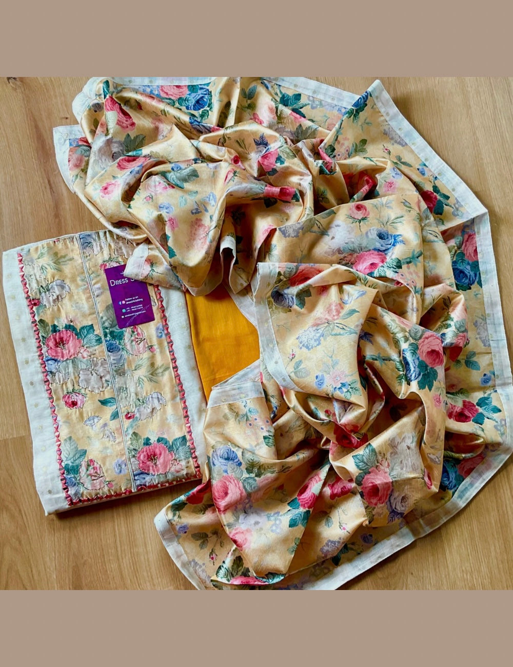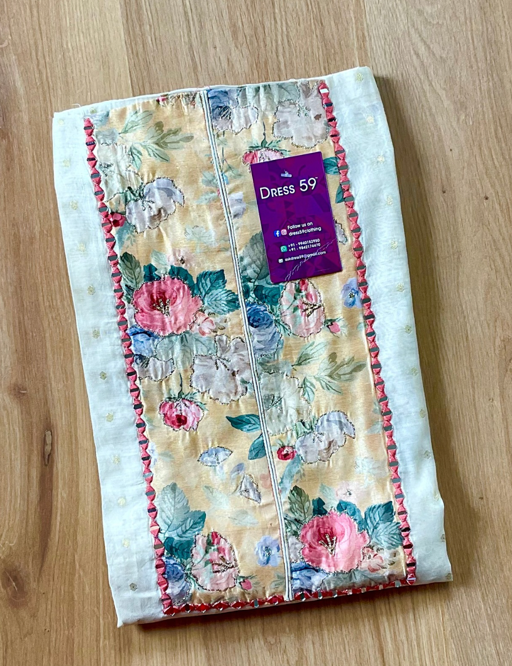 - Top Fabric: Chanderi Silk with Floral Printed Patchwork on the Yoke