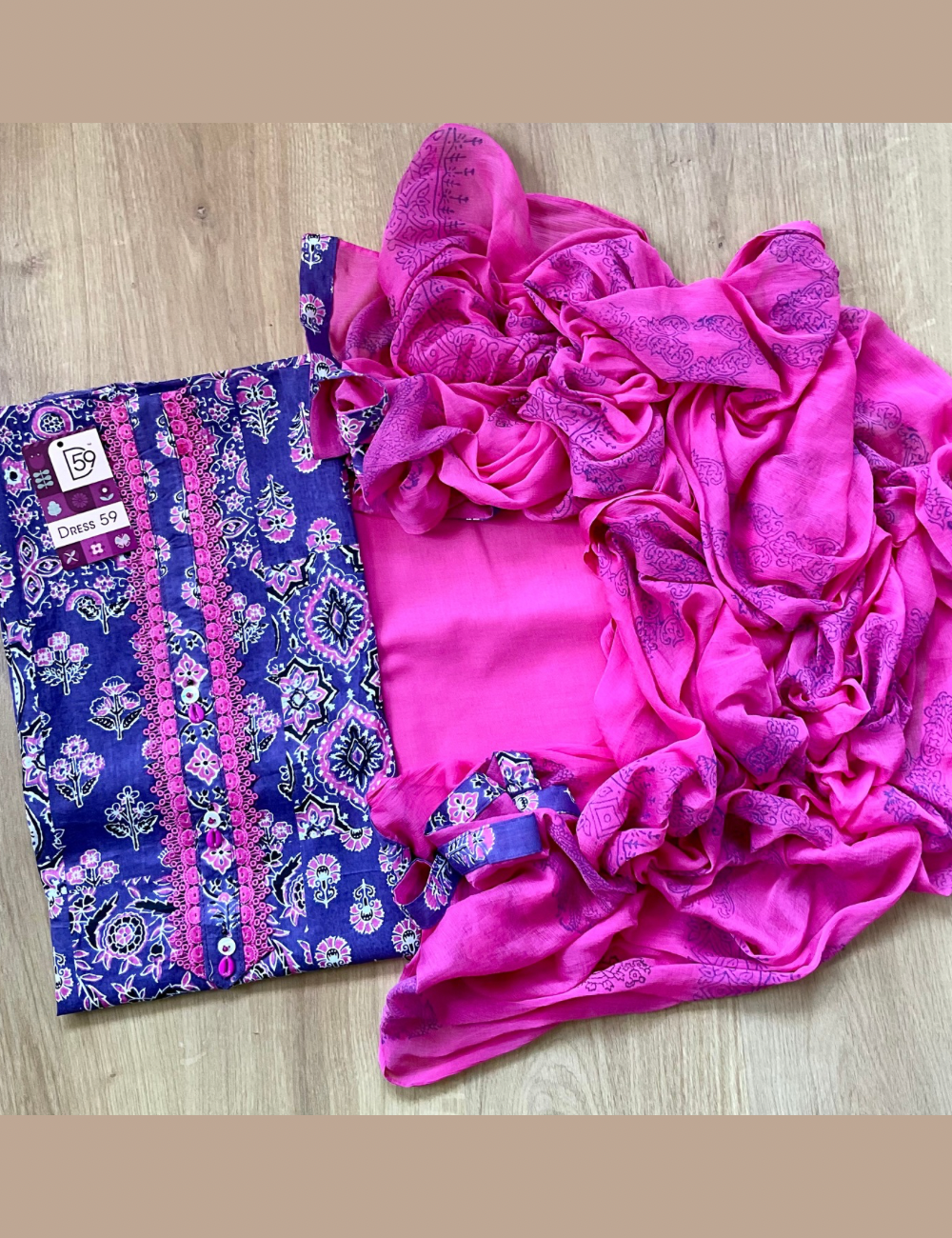 Soft Cotton Floral Printed Unstitched Salwar - Purple