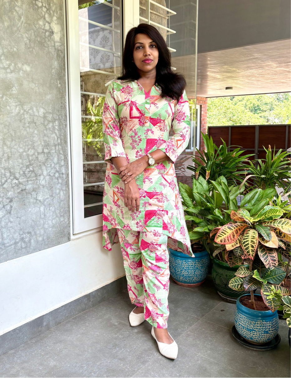 Rayon Cotton Hi-Low Co-Ord Set - Multi
