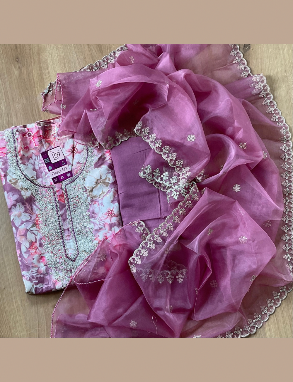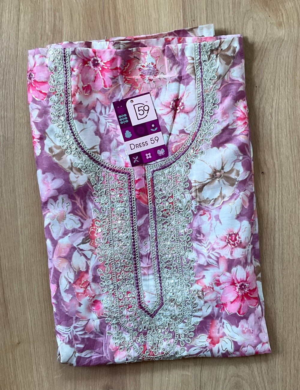 - Top Fabric: Muslin Silk with Floral Prints and Beautiful Embroidery Work around the Neck