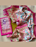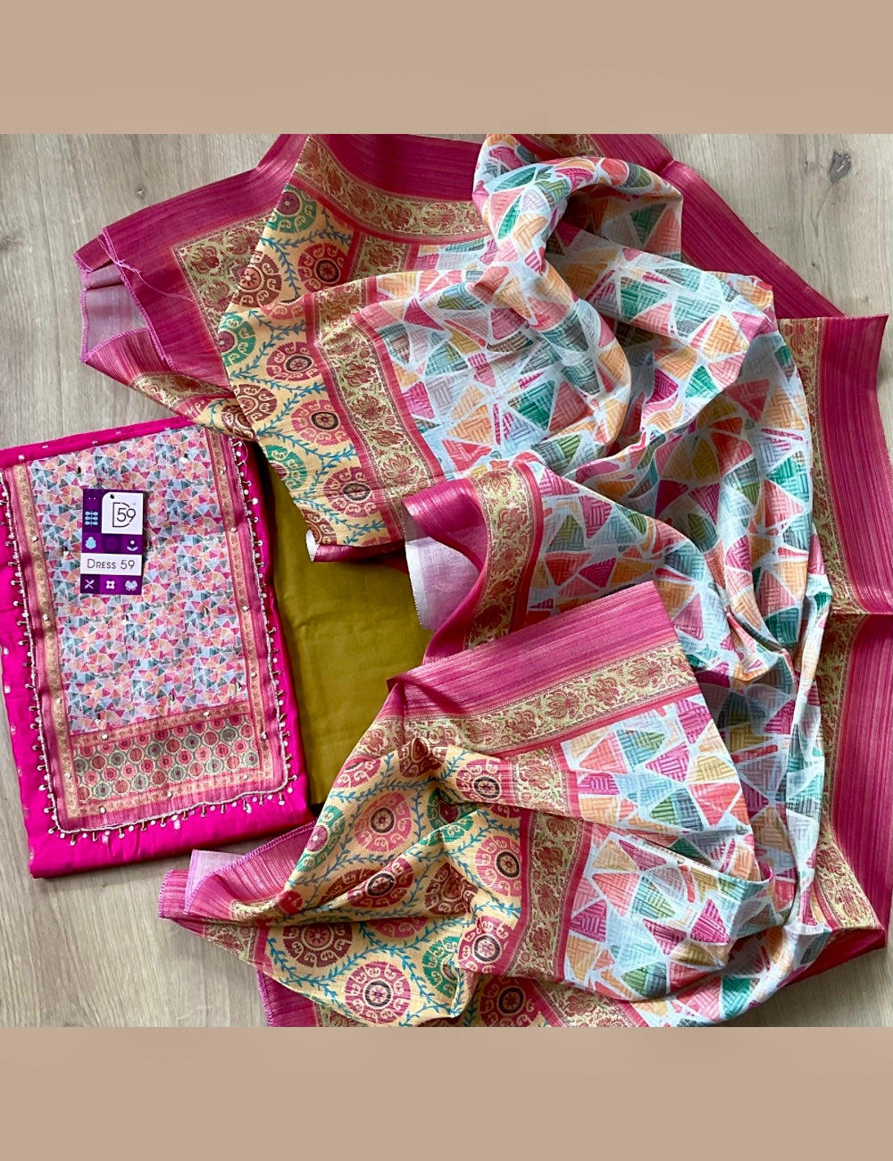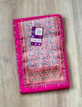 Silk Cotton Traditional Unstitched Salwar with Tissue Silk Patch Work - Rani Pink