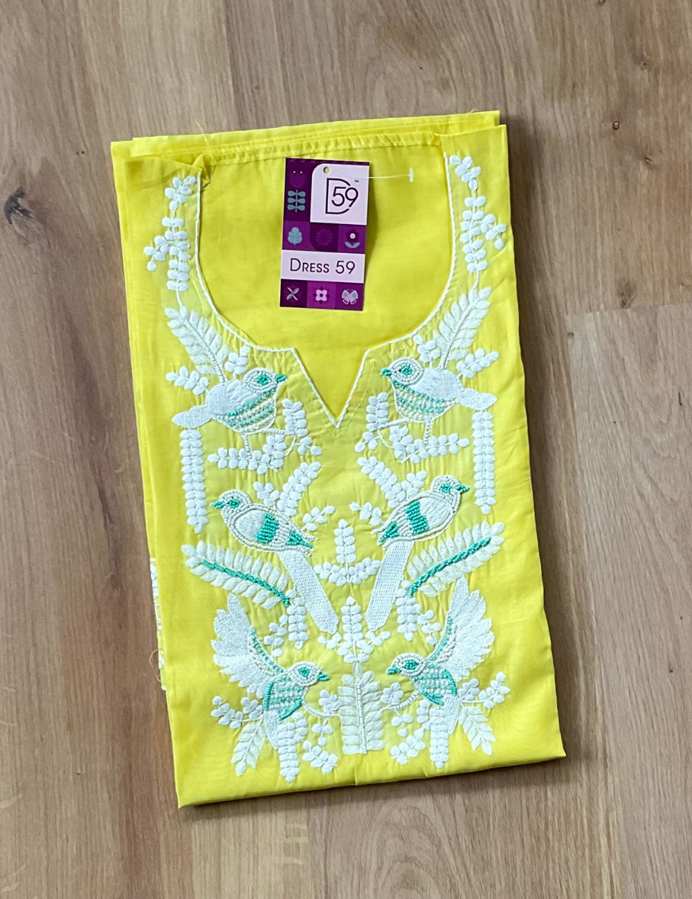 - Top Fabric: Soft Muslin Silk with Beautiful Bird Embroidery and Pearl Work on the Yoke