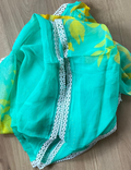 - Dupatta: Contrast yellow - green Combo Organza Dupatta with Floral Prints and White Lace Border