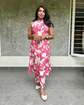 Russian Silk High Neck Designer Coord Set - Pink