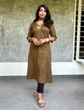 This kurta may appear like brown colour in the picture but its actually mehendi green, slight colour variation due to light and photography