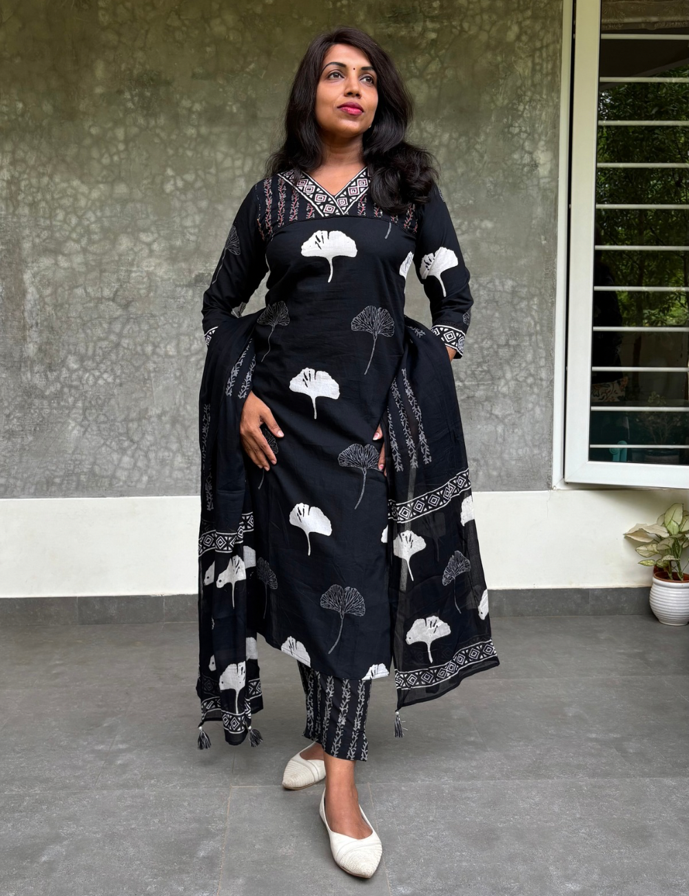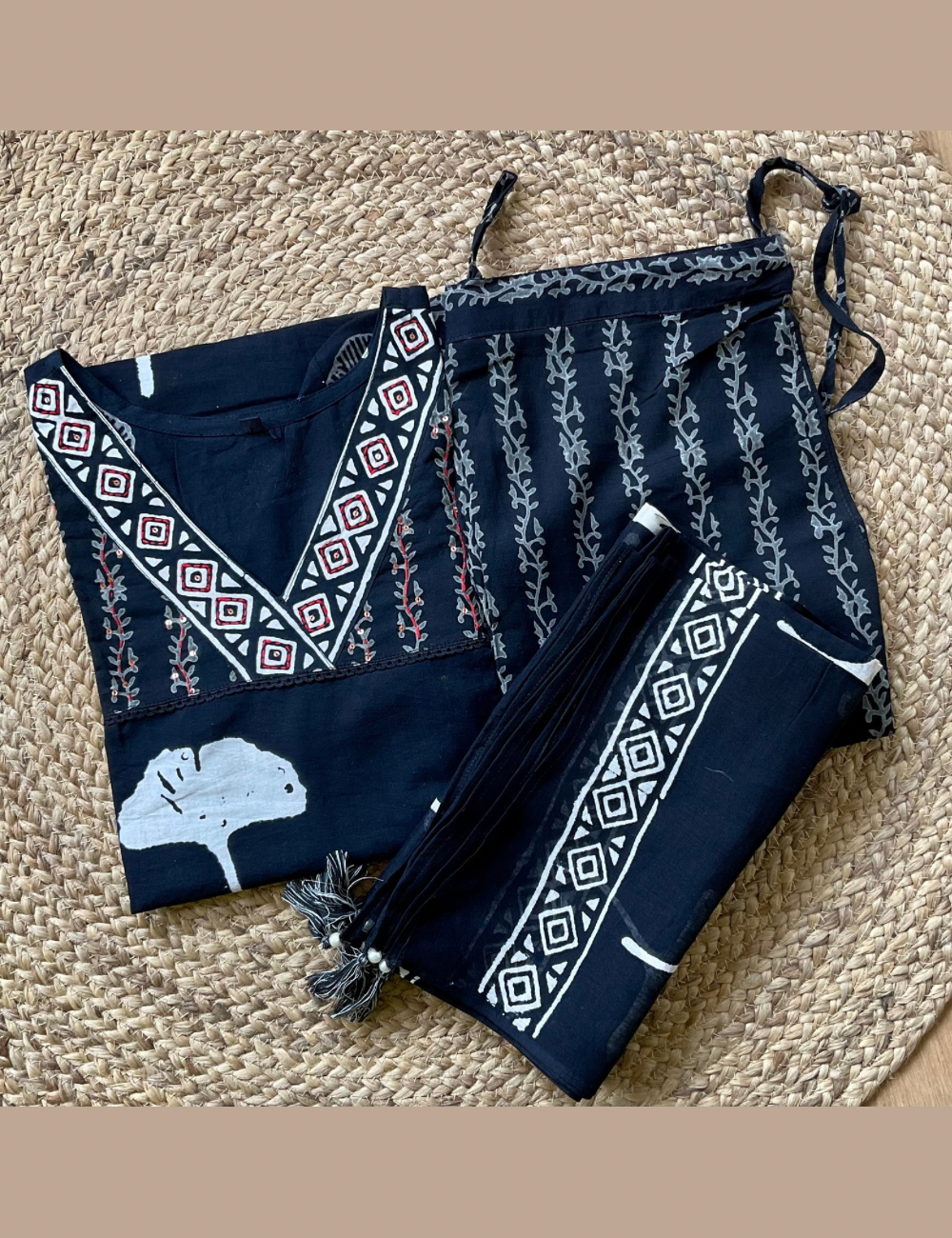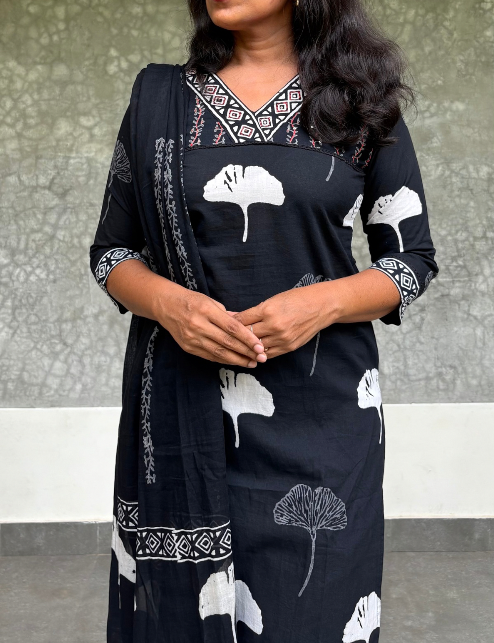 Soft Cotton Floral Printed Kurta Set - Black