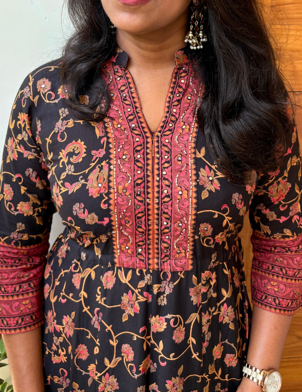 Fabric - Top soft rayon cotton,floral printed, maxi dress with side tie up , embellished on the yoke