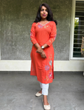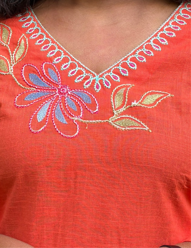 🌸 A classy dark blue kurta with delicate floral embroidery – simple, elegant, and perfect for work or casual days.