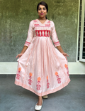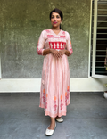 Muslin Silk Hand Block Printed Designer Midi Style Dress - Light Pink
