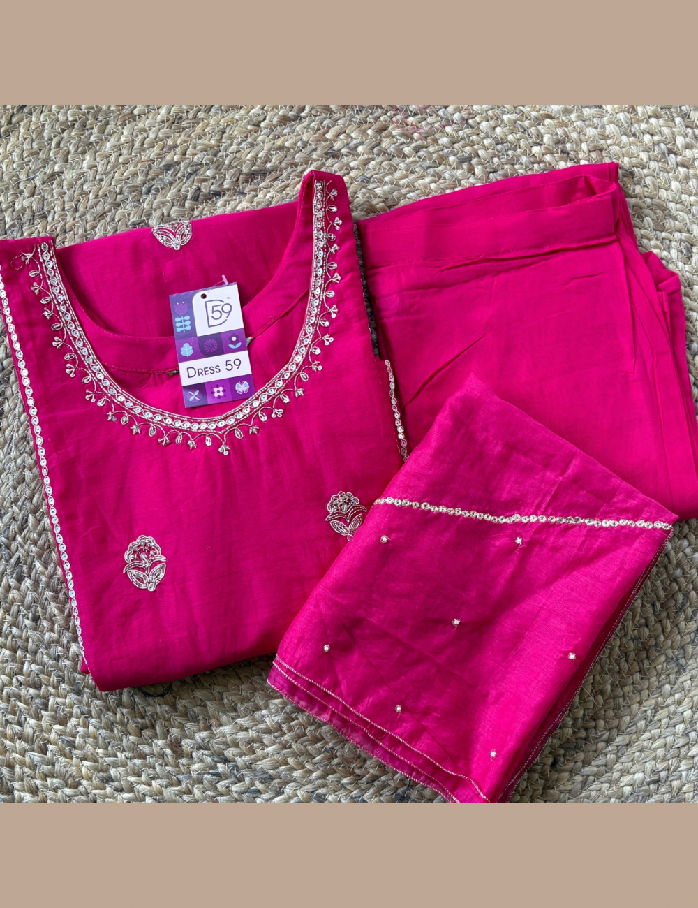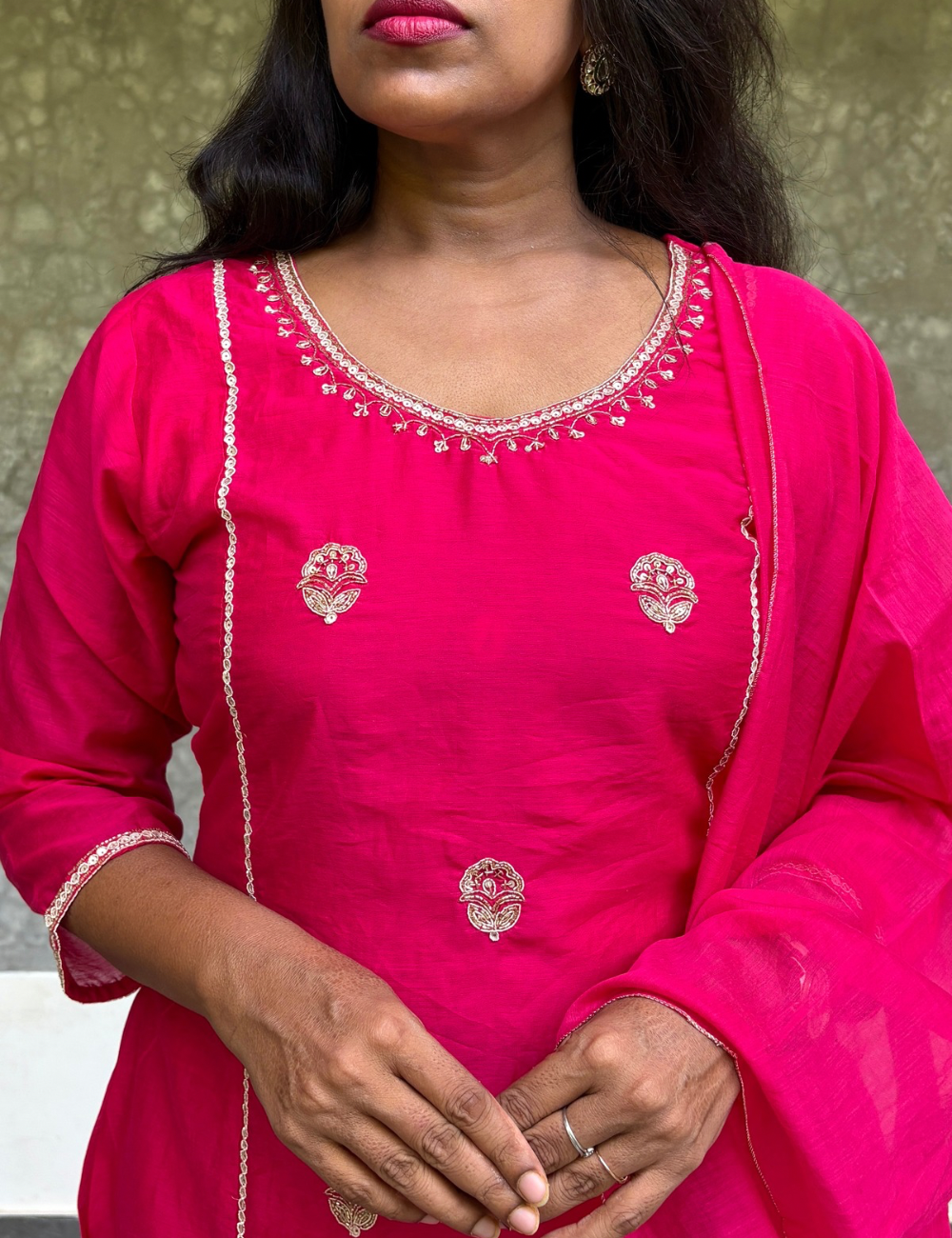 Mul Chanderi Aline Embellished Designer Kurta Set - Rani Pink