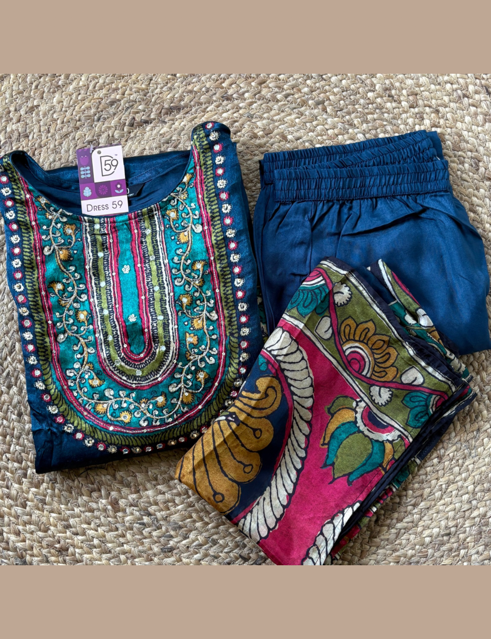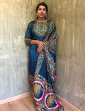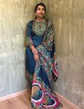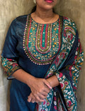 Gajji Silk Designer Kurta Set with Kalamkari Printed Organza Dupatta - Dark Blue