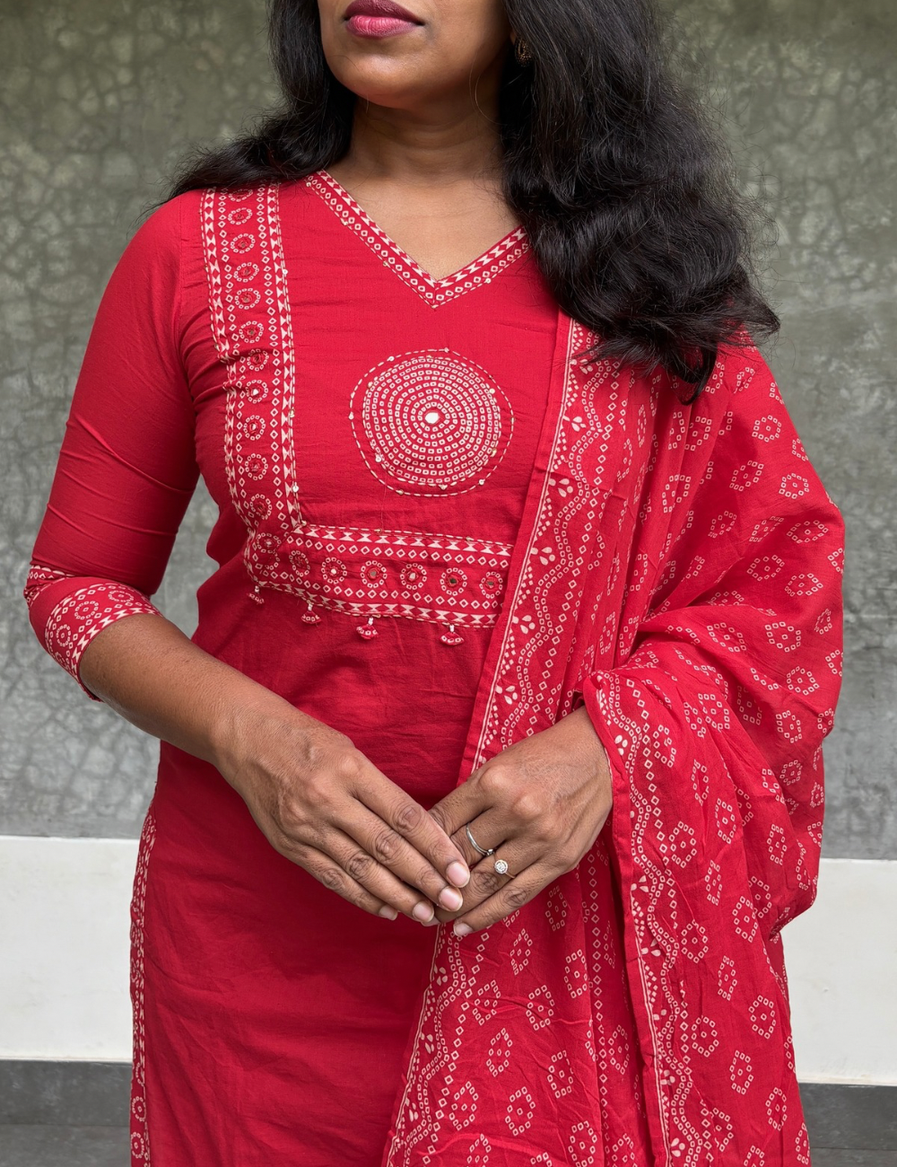 - Style: Bandhani Printed | Straight-Cut Salwar Suit