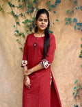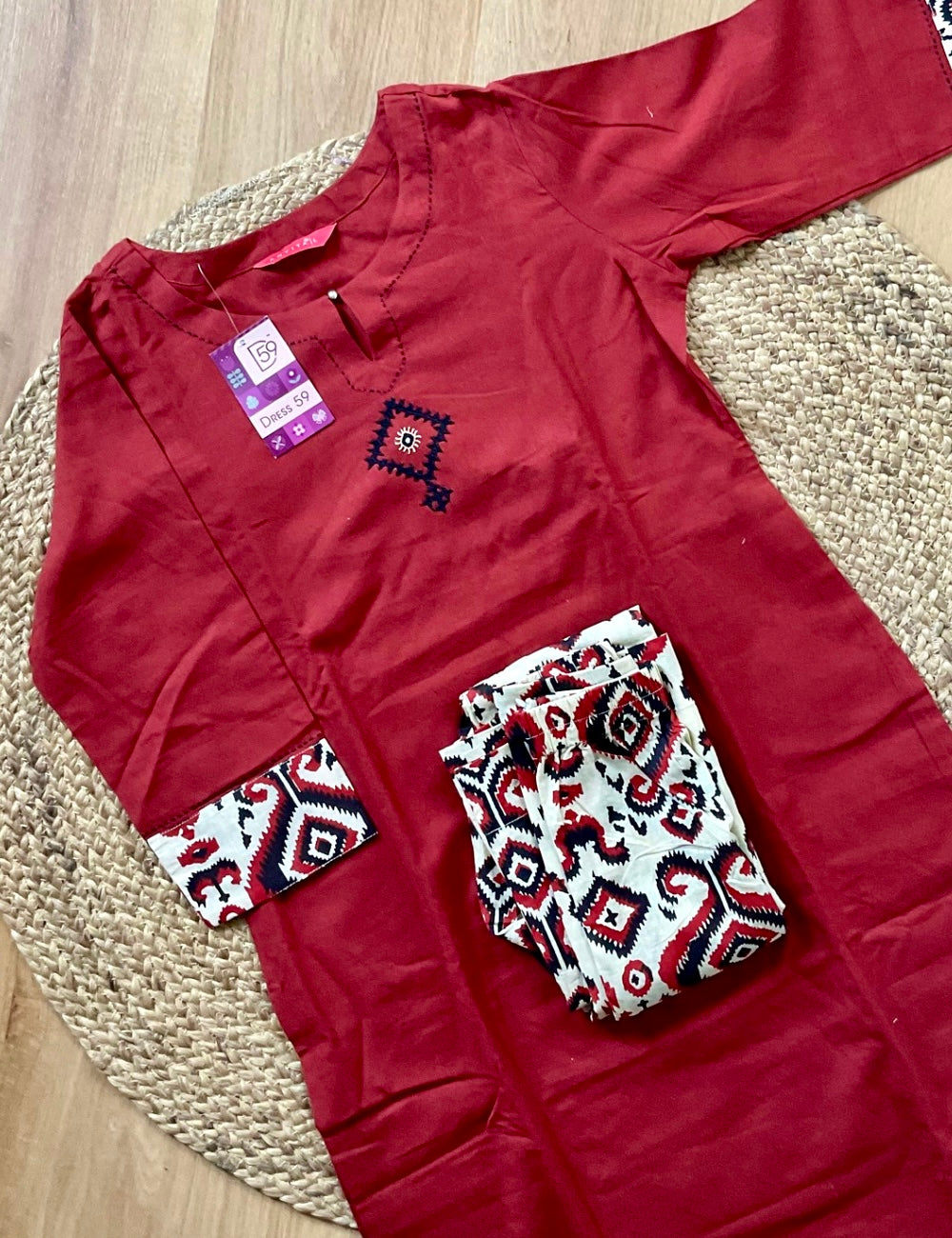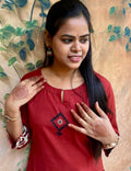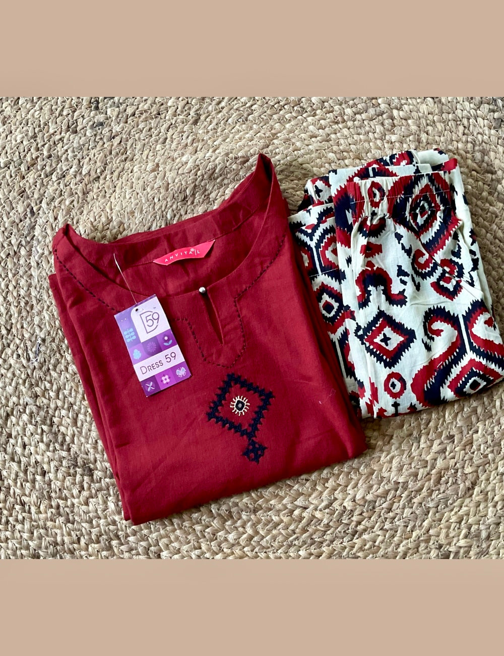 Budget Friendly Cotton Casual Wear Kurta set with Ikat Bottom - Rust Brown