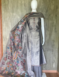 Tissue Silk Kalamkari Patchwork Designer Unstitched Salwar - Grey