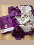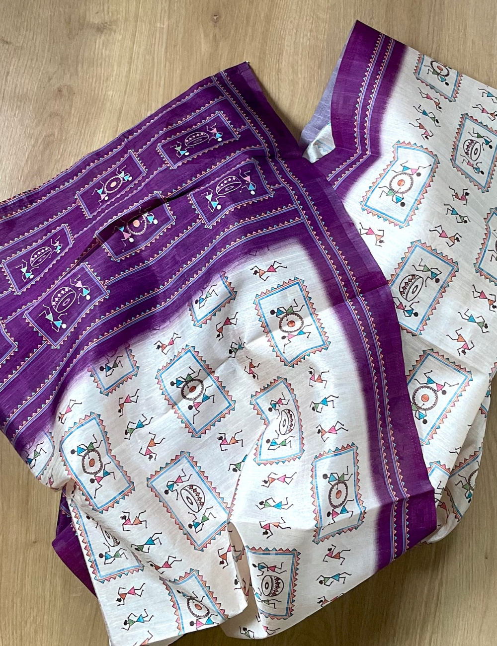 🌿 Elegant dark purple cotton silk set with unique tribal art prints — a perfect blend of comfort and classy design for everyday elegance.