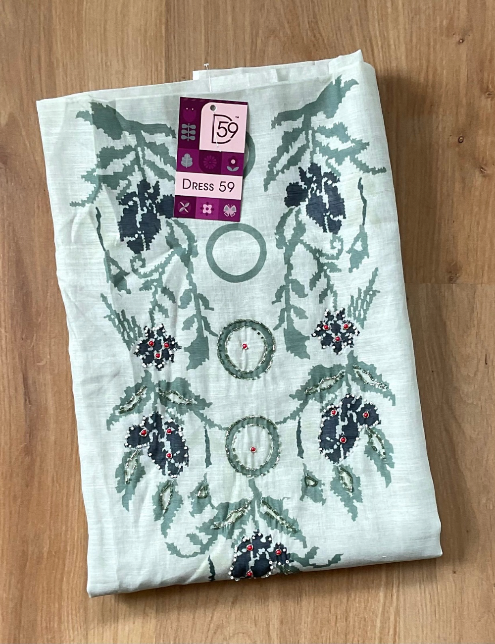 Linen Cotton Floral Pearl Worked Designer Unstitched Salwar - Pastel Green