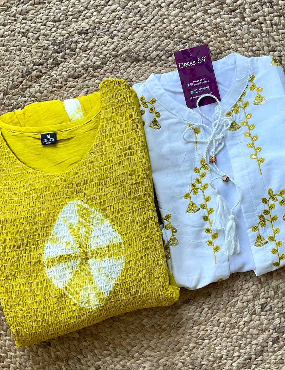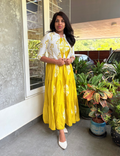 Smocked Tie and Dye Dress with Ethnic Jacket - Lime green