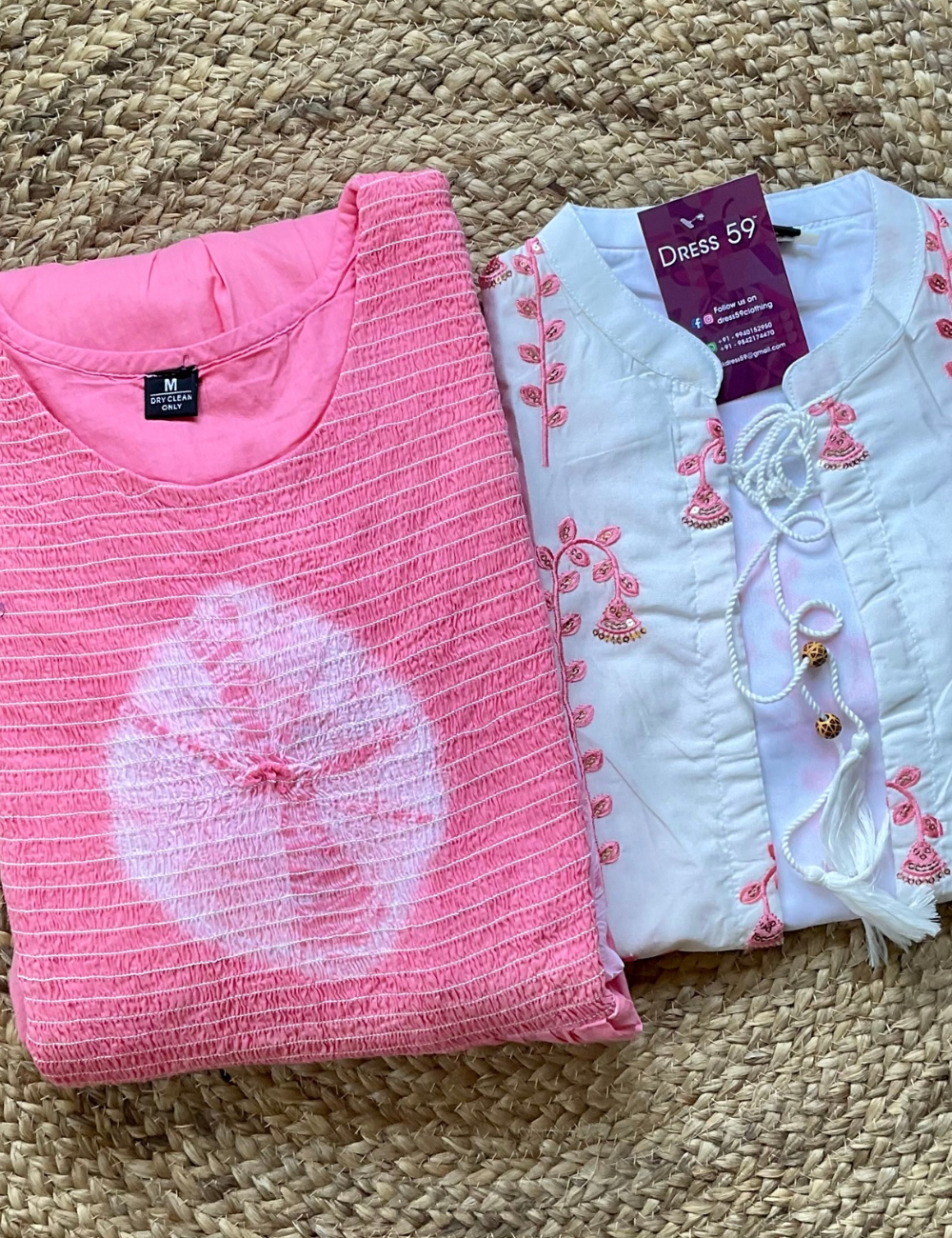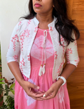 Smocked Tie and Dye Dress with Ethnic Jacket - Pink