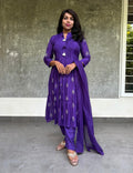 Soft Silk French Knotted Designer Aline Kurta Set - Dark Purple